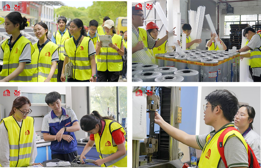 在東方雨虹上海生產(chǎn)研發(fā)物流基地展廳內(nèi),安環(huán)資深經(jīng)理陳濤詳細(xì)介紹企業(yè)發(fā)展歷程、參建經(jīng)典工程案例及核心產(chǎn)品。直觀展示配合生動(dòng)講解,幫助學(xué)生建立對東方雨虹產(chǎn)品特點(diǎn)與技術(shù)優(yōu)勢的初步認(rèn)知,為后續(xù)實(shí)踐奠定基礎(chǔ)。